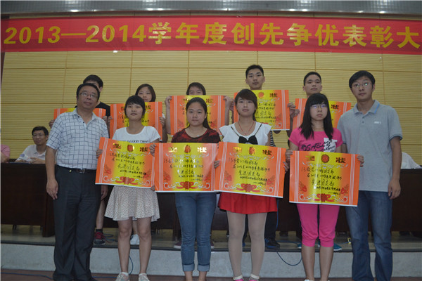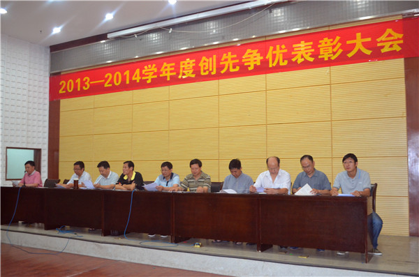( 学工处 讯)2014年6月12日下午,我院2013-2014学年度创先争优表彰大会在学术报告厅隆重举行。陈小勤书记、李为民副院长、徐坤副书记、陈向斌副院长、教务处陈飞处长、轻化工程学院书记兼学工处处长祁旭东、装饰艺术学院贺昌海书记、工商信息学院程业勤书记、中德啤酒学院程汉生书记、机电工程学院张建平书记、院团委刘欢书记、院全体辅导员、班主任老师出席了表彰大会。