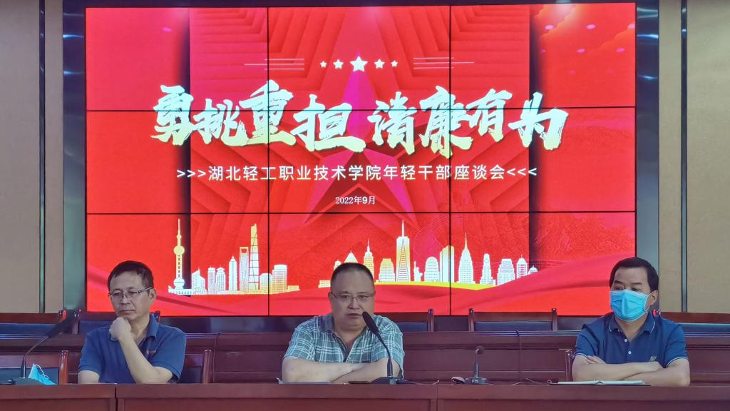 (党委宣传部 严静雅讯)为了更好地激励年轻干部勇于担当重任、敢于攻坚克难,用实际行动贯彻省第十二次党代会精神,以优异成绩向党的二十大献礼,9月9日下午,学校党委召开了年轻干部“勇挑重担、清廉有为”主题座谈会。会议由副院长付三乔同志主持,党委书记、院长徐兵同志和纪委书记罗代吕同志出席,纪委副书记董业德同志、党政办公室主任喻润梅同志、人事处处长方东霞同志列席,29名年轻干部参加。