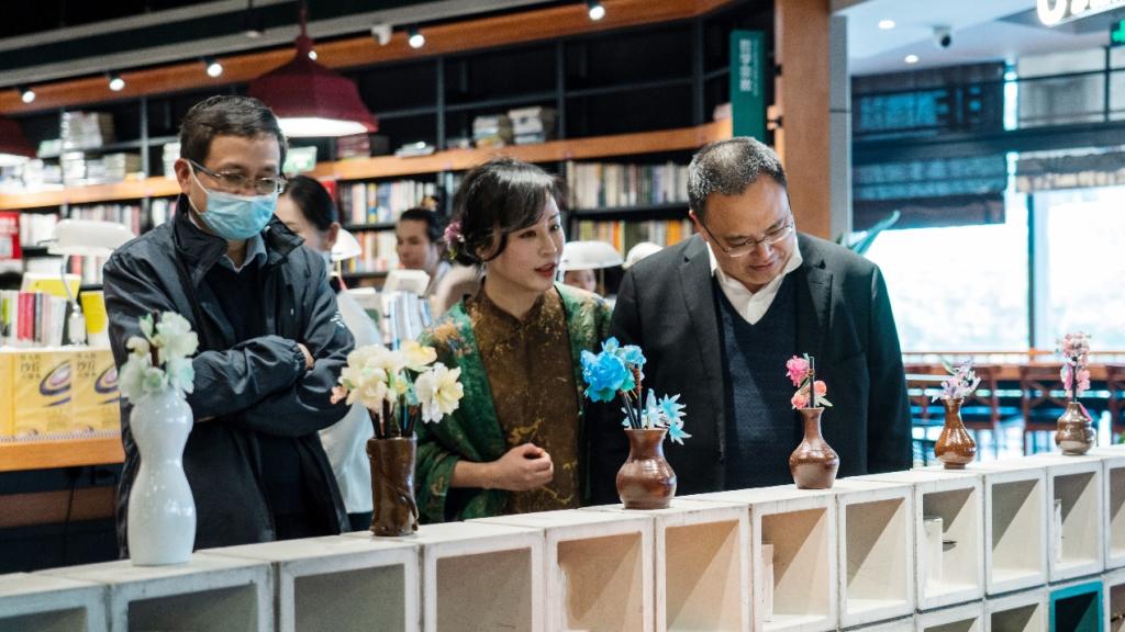 (建筑工程与设计学院 尹蕾讯)《中共中央关于党的百年奋斗重大成就和历史经验的决议》指出“中华优秀传统文化是中华民族的突出优势,是我们在世界文化激荡中站稳脚跟的根基,必须结合新的时代条件传承和弘扬好。” 习近平总书记提出了要坚持四个自信,其中坚持文化自信就是要激发我们对中华优秀传统文化的历史自豪感,是对中国特色社会主义文化先进性的自信。为弘扬传统文化,增强文化自信,以课程思政为主导结合新时代,新格局和新市场需求贯彻教育部专业人才培养方案,湖北轻工职业技术学院建筑工程与设计学院会展策划与管理专业的全体师生在专业负责人尹蕾老师的带领下与西西弗书店武商梦时代华中区旗舰店,于4月7日举办了一场名为“春永驻”的传统文化艺术展。