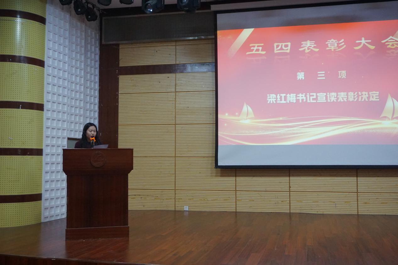 大会第一项,全体师生奏唱国歌,党总支副书记梁红梅为大家宣读表彰决定。对在2022-2023学年表现突出的4个红旗团支部、6个先进班级体、38名优秀共青团干部、47名优秀共青团员、57名优秀学生干部、95名优秀学生、20名青年标兵进行了表彰并颁发荣誉证书。