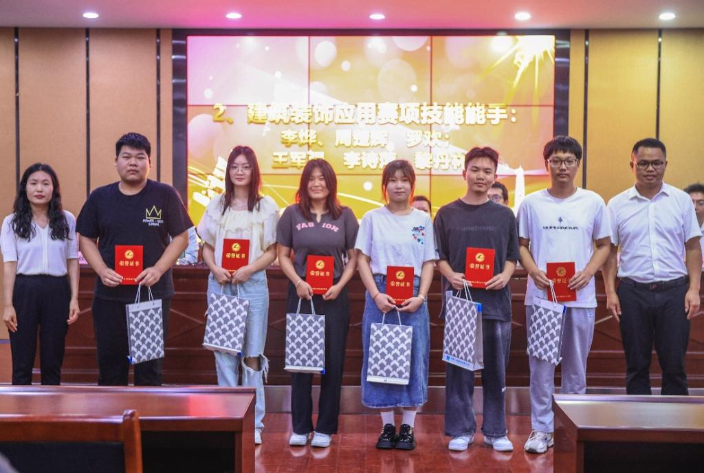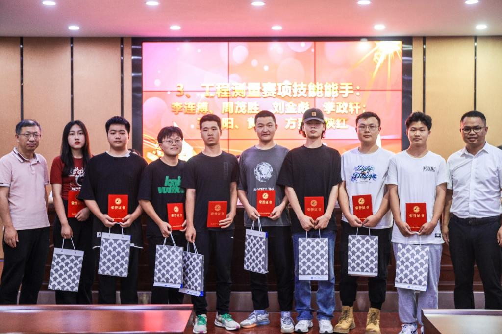 (建筑工程与设计学院 雷刚讯)为贯彻落实习近平总书记关于加快构建现代职业教育体系,培养更多高素质技术技能人才、能工巧匠、大国工匠的重要精神,推动学校高质量发展,打造教育特色,5月16日下午,建筑工程与设计学院邀请武汉建筑业协会李红青秘书长、装配式建筑分会何洪普秘书长、中建三局产业工人职业技能培训学校项旺保校长、中建三局数字公司智慧事业部伏俊洁经理一行参与挂牌共建活动。出席本次活动的还有陈向斌副校长、教务处张建平处长、建筑工程与设计学院杨洁院长、梁红梅副书记及2022年湖北省“中银杯”工程造价与建筑工程识图赛项、工程测量赛项、建筑装饰应用赛项等三个赛项获奖学生代表,本次活动由建筑工程教研室主任杜娟老师主持。
