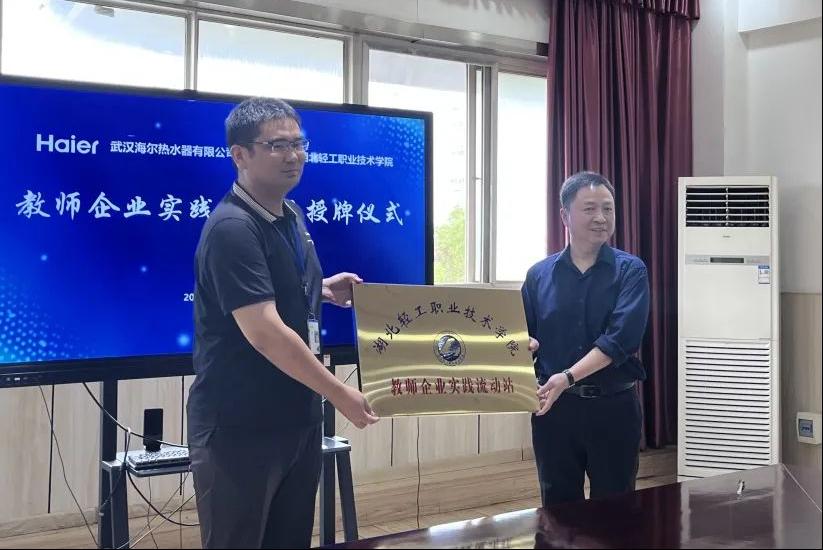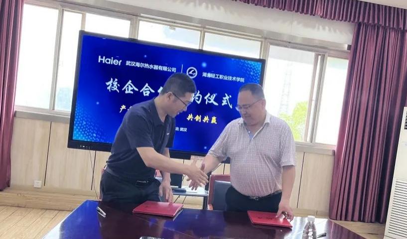 武汉海尔热水器有限公司高度重视技能人才队伍建设,于2022年7月校企合作启动校企双师培育项目,对小微设备类、模具数控类技能人才进行技能提升培养,促进生产效率提高。武汉热水器模具中心接口人彭飞表示,非常感谢合作院校的教育支持,他表示前期的培训有效促进了技术团队整体工作技能水平提升,提高了企业生产效率。制造部闵勇部长也结合武汉海尔热水器技术改革创新成效的具体案例,对校方的智力支持表示感谢,对我校实习生的综合表现予以充分肯定 。基于校企双方产教融合、共创共赢的宗旨,和长期的有效合作基础,双方领导本次续签了校企合作协议。