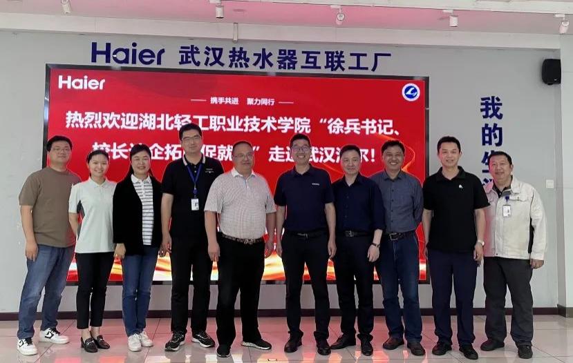 2023年5月26日上午,校领导徐兵院长、院长助理祁旭东、机电工程学院洪凯、尹久、谢助新一行拜访了武汉海尔热水器有限公司,校企双方就中华人民共和国教育部教育部供需对接育人项目进行沟通交流。海尔武汉园区热水器公司总经理宋东辉、园区人力资源总经理吴佰威等参与接待;校企合作部经理谭园为来宾作了项目介绍,双方共同回顾了该项目从校企联合申报到获批立项的全过程, 对目前的工作进展以及后续工作计划作出了安排。