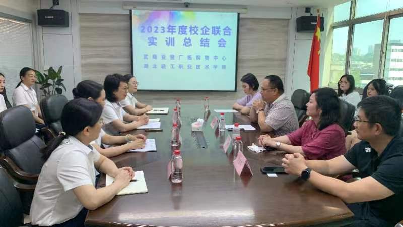 (党政办 黄雨珊讯)6月9日,武商亚贸广场购物中心联合湖北轻工职业技术学院举行了实习总结会。武商亚贸总经理田羽霞、副总经理王芳,总经办负责人李薇、人力资源部负责人邹丹,湖北轻工职业技术学院党委书记、院长徐兵、党政办主任喻润梅、工商管理学院院长邱文军出席了本次会议。