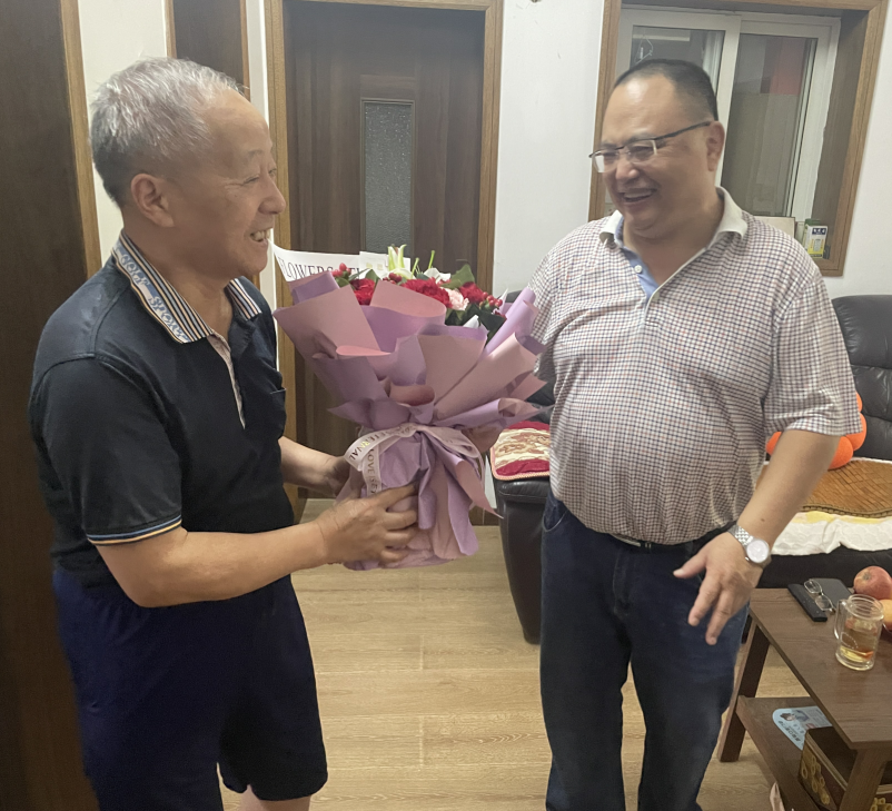 (党政办公室 黄雨珊讯)9月6日上午,在第39个教师节来临之际,我校党委书记、校长徐兵、党政办公室主任喻润梅、人事处(党委教师工作部)处长方东霞、离退休处处长林亚正,前往老教师、老党员代表陈碧华、吕先胜同志家中,向他们致以教师节的诚挚问候和美好祝福 。