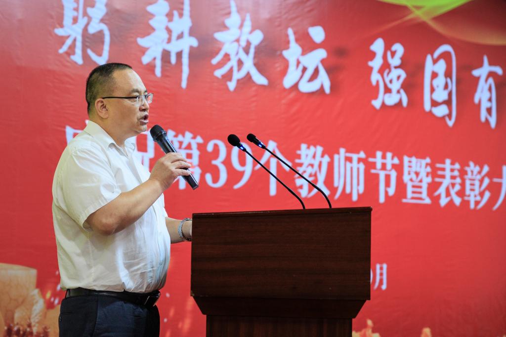 (党委宣传部 党委教师工作部讯)九月,秋光正好,秋叶含香。9月7日下午,我校“躬耕教坛 强国有我 ”庆祝第39个教师节暨表彰大会在学术报告厅隆重举行。全体校领导出席大会,全体教职员工、学生代表参加。大会由副校长付三乔同志主持。