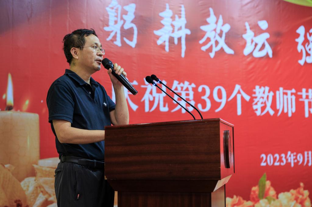 徐兵指出,办好高质量的职业教育,离不开每一位职业教育者的履责与担当,助推湖北轻工行稳致远,更离不开每一位轻工人的付出与努力。教育强则国家强,教师强则学校强。三尺讲台,四季耕耘,我们的教师们青丝变白发,丹心筑师魂,他们忠诚党教育事业,恪尽教师职责,成就了我校最亮丽的底色。广大教师要深入学习贯彻党的二十大精神及习近平总书记关于教育的重要指示批示精神,深刻认识在教育强国、科技强国、人才强国建设中肩负的光荣使命与重大责任,牢固树立“躬耕教坛,强国有我”的志向与抱负,争做“四有”好老师和“四个引路人”,为党育人、为国育才。