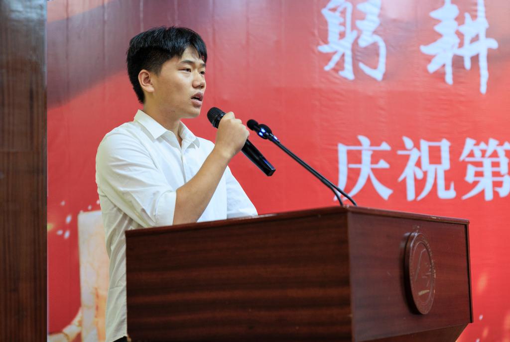 学生代表建筑工程与设计学院董向洋同学向躬耕教坛的全体教师表达了节日的祝福,并讲述了他入校以来在老师指引下成长的经历,表示要坚定理想信念,以实际行动回报师恩厚望。