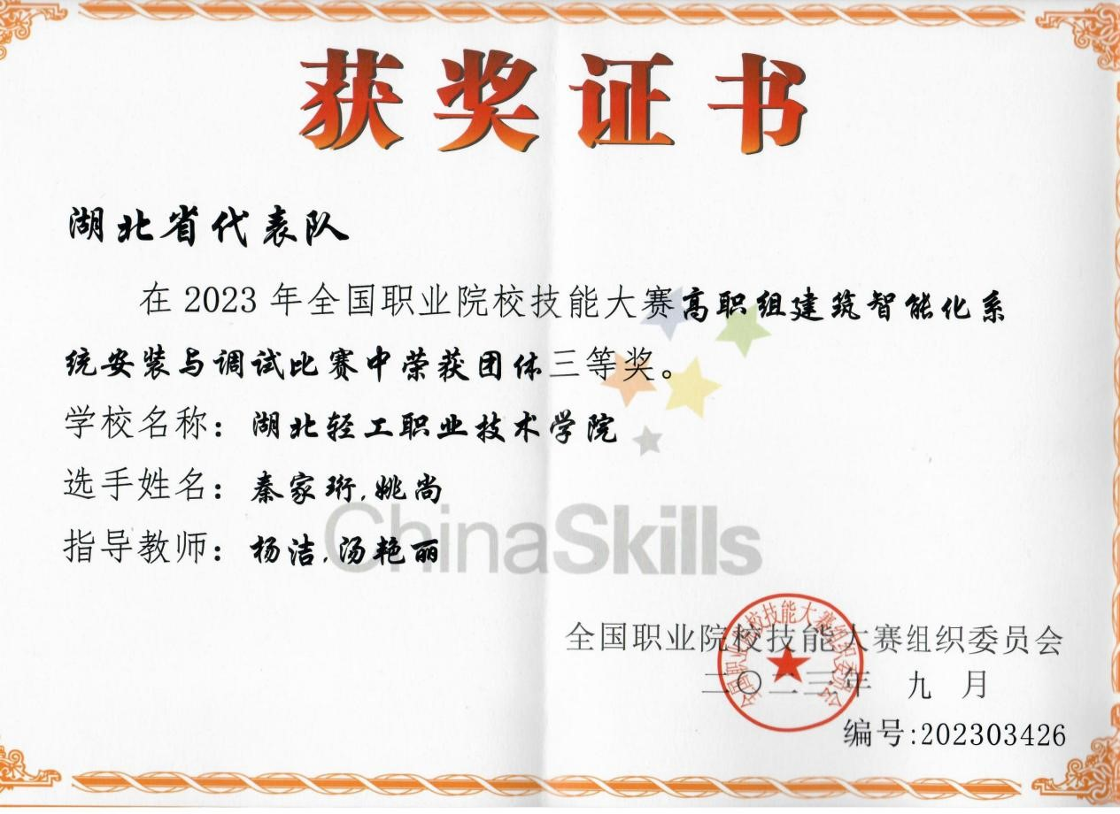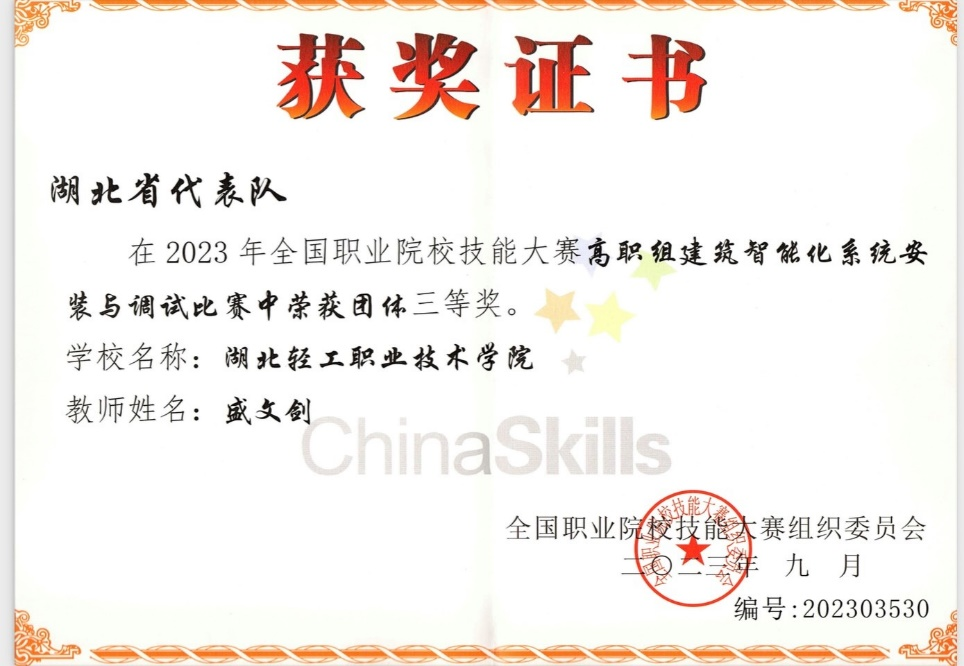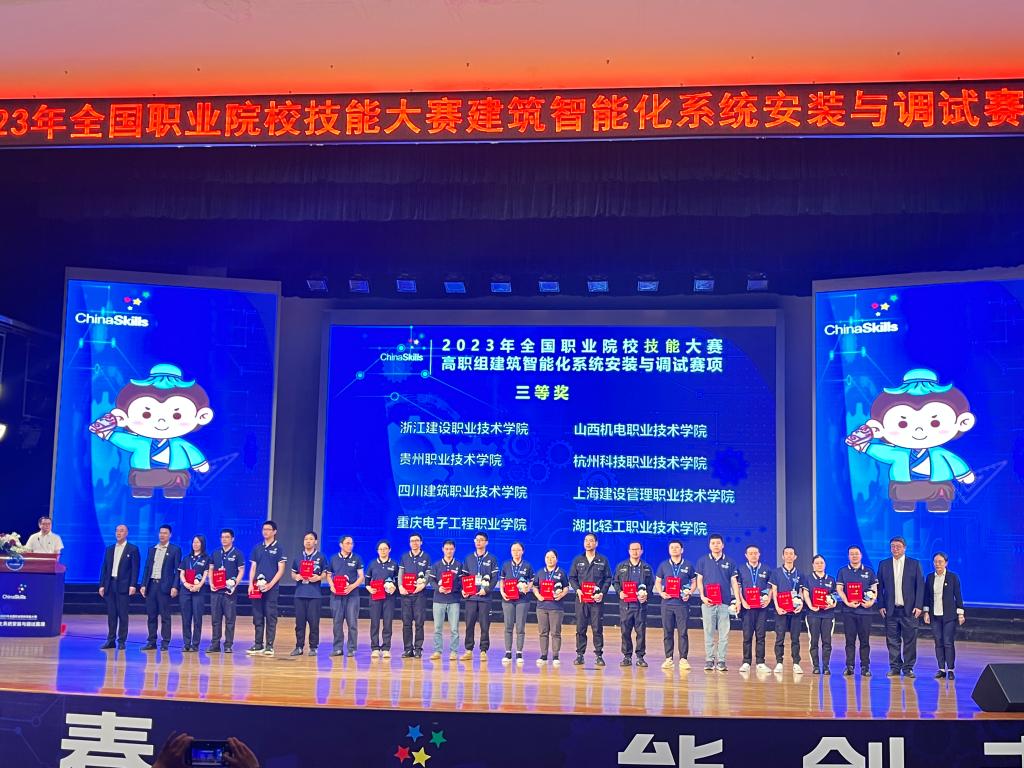 (建筑工程与设计学院 汤艳丽讯)匠心铸就成才梦想,技能创造出彩人生。9月17日,2023年全国职业院校技能大赛“建筑智能化系统安装与调试”赛项在黑龙江建筑工程职业技术学院举办,本次全国职业院校技能大赛,是由教育部发起并牵头,联合国务院有关部门共同举办的一项公益性、全国性职业院校综合技能竞赛活动。我校教师和学生两支代表队取得师生两项全国三等奖。