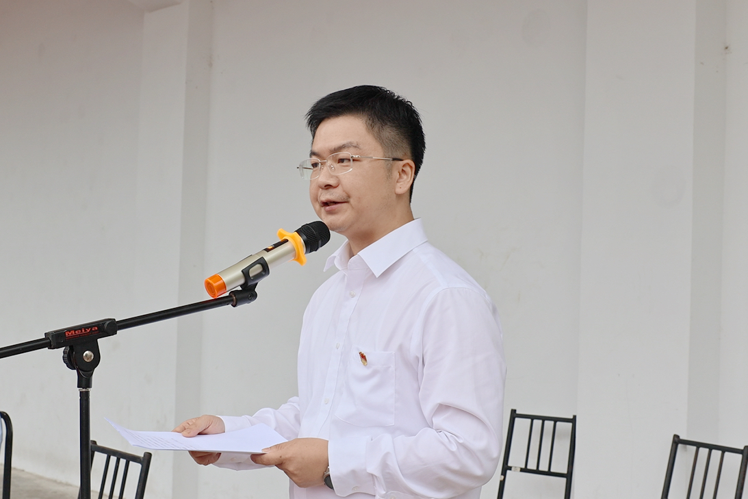 工商管理学院辅导员朱棣文作为青年教师代表发言,他通过学校师生技能竞赛摘取奖项、志愿服务温暖人心的一个个小故事,号召新同学们志存高远、脚踏实地,以实际行动彰显青春担当。