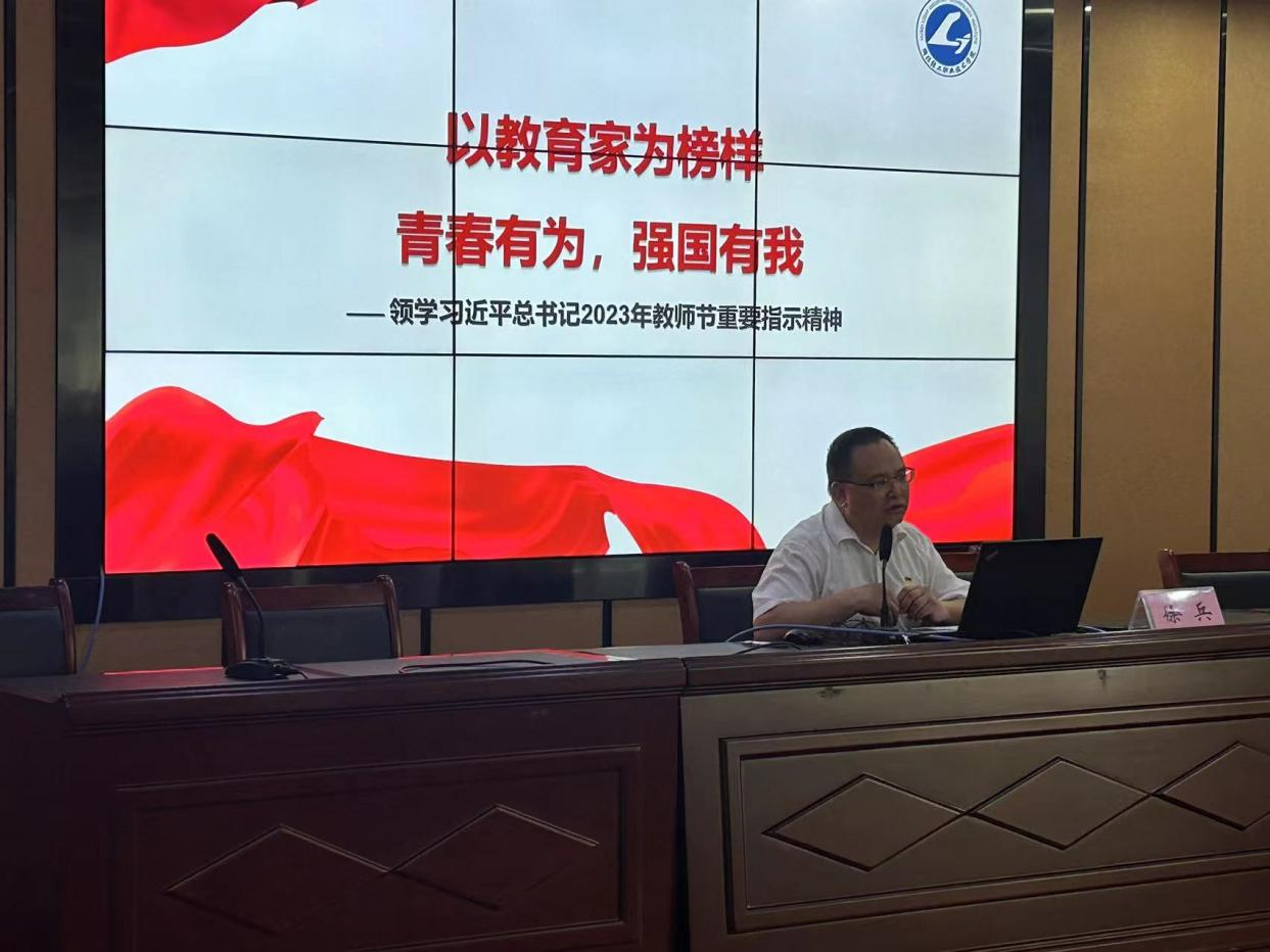 校党委书记徐兵以“以教育家为榜样,青春有为,强国有我”为题,专题领学了习近平总书记2023年教师节重要指示精神,并结合党的二十大报告中关于教育的新思想、新战略、新要求,强调了教师教书育人的职责与使命,号召全体青年教师不负习近平总书记嘱托,以教育家为榜样,大力弘扬教育家精神,为强国建设、民族复兴伟业贡献青春力量。