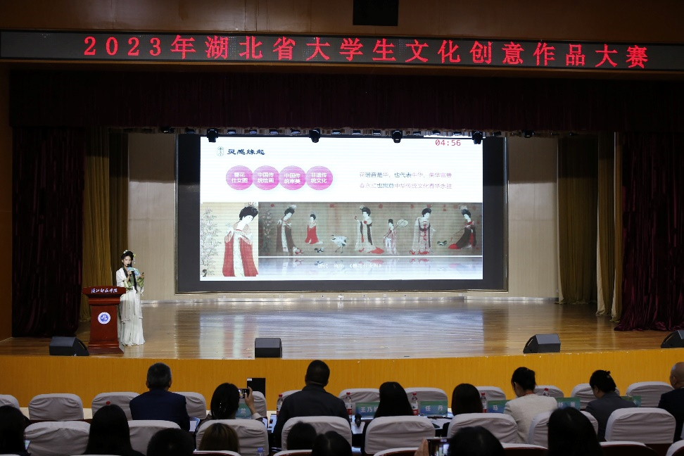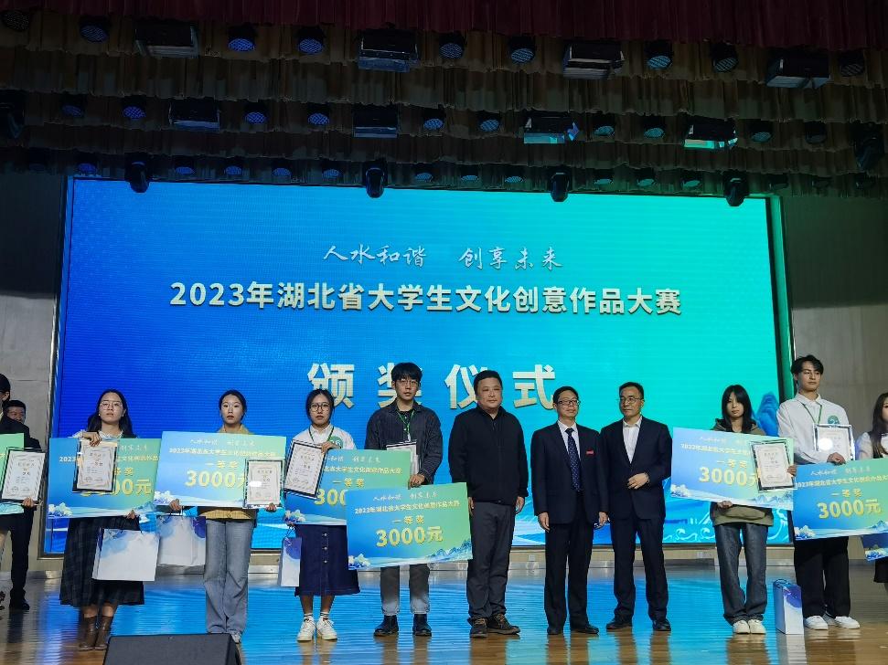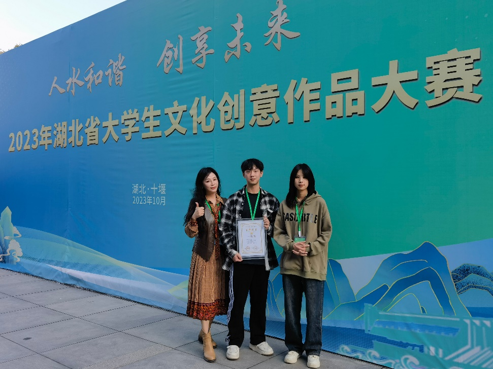 (建筑工程与设计学院 尹蕾讯)激情点燃梦想,创意成就未来。10月24日2023年湖北省大学生文化创意作品大赛复赛路演决赛盛典在汉江师范学院举行,本次比赛由高等学校毕业生就业指导中心、湖北省大学生创新创业俱乐部联合主办,来自全省20所本科和高职院校、30支参赛团队不时迸发创意火花,彰显我省青年大学生的文化自信和创新精神。我校22级会展学生李朵、梁世宇、朱锦琨在尹蕾老师的指导下,以中国风花簪与水文化相结合所创作品《春永驻》在复赛路演中脱颖而出。凭借文创项目的创新力和实践能力荣获省级一等奖。
