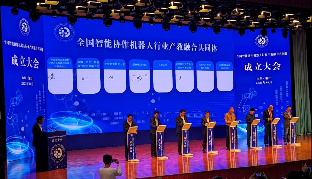 全国智能协作机器人行业产教融合共同体由遨博(北京)智能科技股份有限公司、北京航空航天大学、烟台职业学院牵头,联合30+所本科院校、80+所职业院校及100+家上下游产业链相关企业、行业协会、科研院所共同组建,其目的在于探索跨区域产教融合新途径,为智能协作机器人产业的发展提供技术和人才支撑。