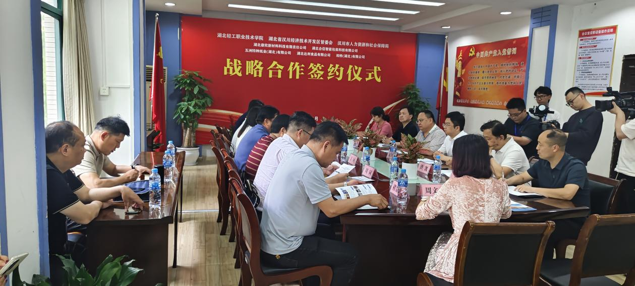 洽谈会上,机电工程学院院长洪凯与康欣新材料股份有限公司、湖北合信智能包装科技有限公司负责人签订了人才战略校企合作协议;轻化工程学院院长赵锦与五洲特种纸业(湖北)有限公司、达利食品有限公司、双桥(湖北)有限公司负责人签订了人才战略校企合作协议。