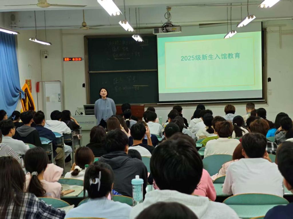 (图书馆 毛望平讯)秋意渐浓,新学期如约而至。为了让2025级新生更好地了解和使用图书馆资源,2025年10月13日,我校图书馆在B203举办了一场别开生面的“新生入馆教育培训”活动。