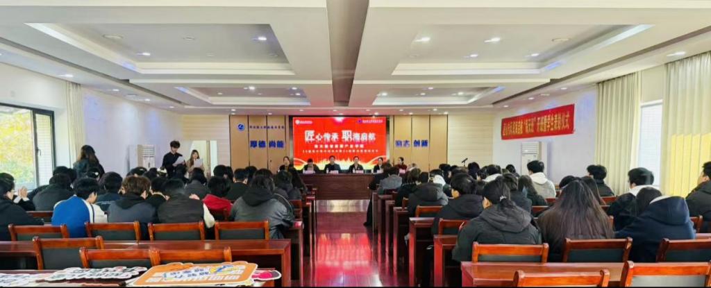 (建筑工程与设计学院 罗婷讯)为深入贯彻落实产教融合战略部署,扎实推进校企协同育人机制建设,11月19日,湖北轻工职业技术学院建筑工程与设计学院与湖北海天时代科技股份有限公司联合举办"匠心传承,职海启航"2025级海天班开班仪式暨2024级海天班表彰仪式。学校党委副书记、校长夏光蔚,建筑工程与设计学院院长杨洁,副院长李国芳,湖北海天时代科技股份有限公司产教融合负责人刘照朋、运营负责人王丹等校企领导出席活动,两届海天班学员参加仪式。