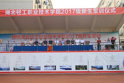(党委宣传部 林亚正讯)云天收夏色,木叶动秋声。9月25日上午,湖北轻工职业技术学院2017级新生军训会操表演暨开学典礼在校运动场隆重举行,校领导方正平、付三乔、陈向斌、刘少清、黄宪富及承训单位领导武汉警官职业学院陈冬主任等出席,承训单位、学工部领导、学校六个学院院长、副书记、辅导员、新生班主任及全体新生参加。学校党委学工部部长艾发安同志主持此次活动。