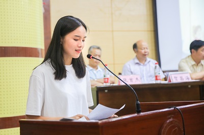 毕业生代表华勋钦同学在发言中回顾了充实、美好的大学生活,表达了毕业的喜悦,并对三年学习生活中老师们的付出表达了衷心的感谢。工商信息学院刘新同学代表全体在校学生送别学兄学姐,表示会继承和发扬学兄学姐们的优良传统和作风。
