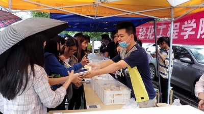 (轻化工程学院 李瑶琴讯)为落实学校加强职业教育的要求,加大教学过程中的实训力度,充分调动师生实践创新的积极性。5月23日下午4点,轻化工程学院在我校篮球场举行了学生实训作品鉴赏活动。本次活动主要展示了由学生亲手制作的面包、冰淇淋、酸奶等作品,并邀请全校师生免费品尝, 短短几十分钟内有数百名学生参与,所有作品一抢而光。活动利用手机扫描,由学生投票选出自己喜爱的作品,,其中冰淇淋票数最多,同学们纷纷表示学校冰淇淋最好吃。