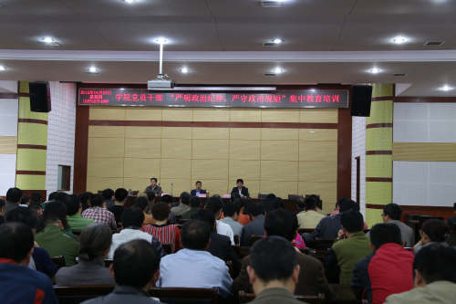 (党政办公室 林亚正讯)根据教育厅统一部署,4月23日下午3点50分,我院在报告厅举行了由全体党员及中层以上干部参加的“严明政治纪律,严守政治规矩”集中教育活动的动员大会。会议由学院院长徐功瑾同志主持,党委书记方正平同志做了动员讲话,党委副书记徐坤同志传达了省、厅领导关于这次活动的指示精神。