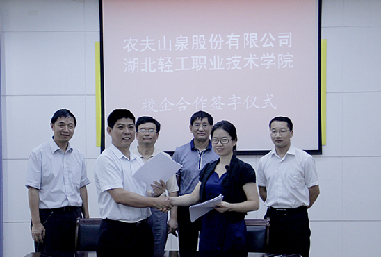 随着中德啤酒学院饮料专业筹建工作的展开,越来越多的食品饮料生产企业对此表现出了浓厚的兴趣。在双方合作伙伴、全球知名啤酒饮料机械设备供应商——德国克朗斯股份有限公司的引荐下,农夫山泉股份有限公司和我院就合办饮料专业达成了初步合作意向。在经过多次调研和洽谈后,双方于2013年9月10日签订了校企合作协议。 据协议要求,从2014年起,农夫山泉股份有限公司协助我院在该公司下属工厂所在地进行招生宣传,每年招收80名高中毕业生,连续招生3年,开办饮料专业“农夫山泉班”,为其进行“订单式”人才培养。