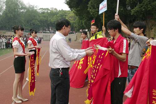 院长徐功瑾致闭幕词。本届运动会展现了全校师生积极进取、和谐奋进的精神风貌,展现了运动员热爱运动、增强体质的积极心态。两天来,赛场上,运动员奋力拼搏,赛出了成绩,赛出了风格;裁判员认真负责,严守比赛规程,评出了公正、评出了水平。赛场下,广大师生热情服务,摇旗呐喊,加油助威展示出良好的精神面貌。本届运动会是成功的大会。