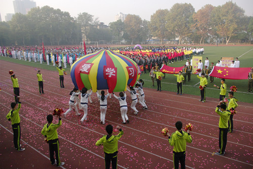 本次运动会历时两天,共95个班级千余名师生参加12个大项目比赛,本次运动会采取分组比赛。经过运动员紧张激烈的角逐,运动会取得了运动成绩和精神文明的双丰收。