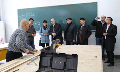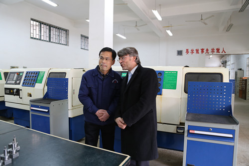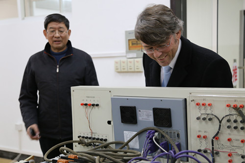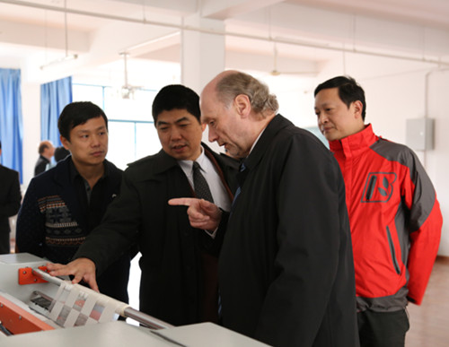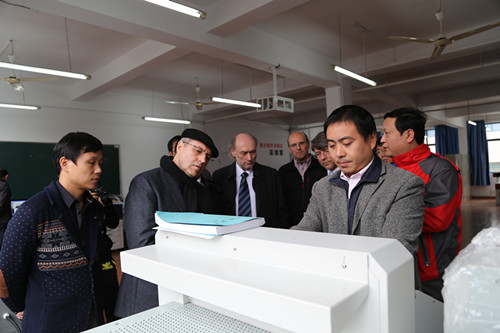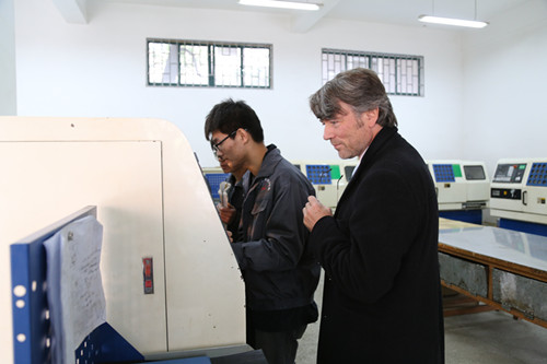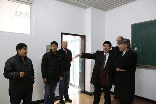 11月26日至28日,汉斯赛德尔基金会东北亚处处长Lange先生以及驻上海专家Kaefler和Seuling先生前来我院与教育厅和院领导商谈继续合作事宜,对外交流与合作处负责前期与德方和教育厅的联系以及会谈时的翻译和接待工作,下图为28日下午德国专家在院长徐功瑾、常务副院长李为民陪同下参加各系部实训中心。