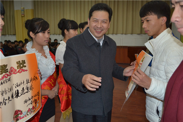 装饰系胡耀平主任为安全文明优秀班级颁奖