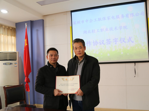 (院党政办讯)12月26日上午,院长徐功瑾、副院长陈向斌、教务处处长陈飞等领导与到访的深圳市中企工联保家电服务有限公司总经理刘家兴先生一行,在学院四楼会议室就大学生实习实践及就业、搭建人才自主创业平台、企业人员培训及共同制定家电售后服务标准等校企合作事宜进行了深入的交流与探讨,双方初步达成了全面合作意向,签订了合作框架协议,双方一致同意从2014年起正式启动具体合作事项。