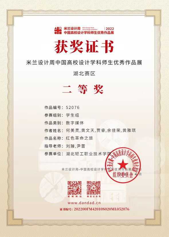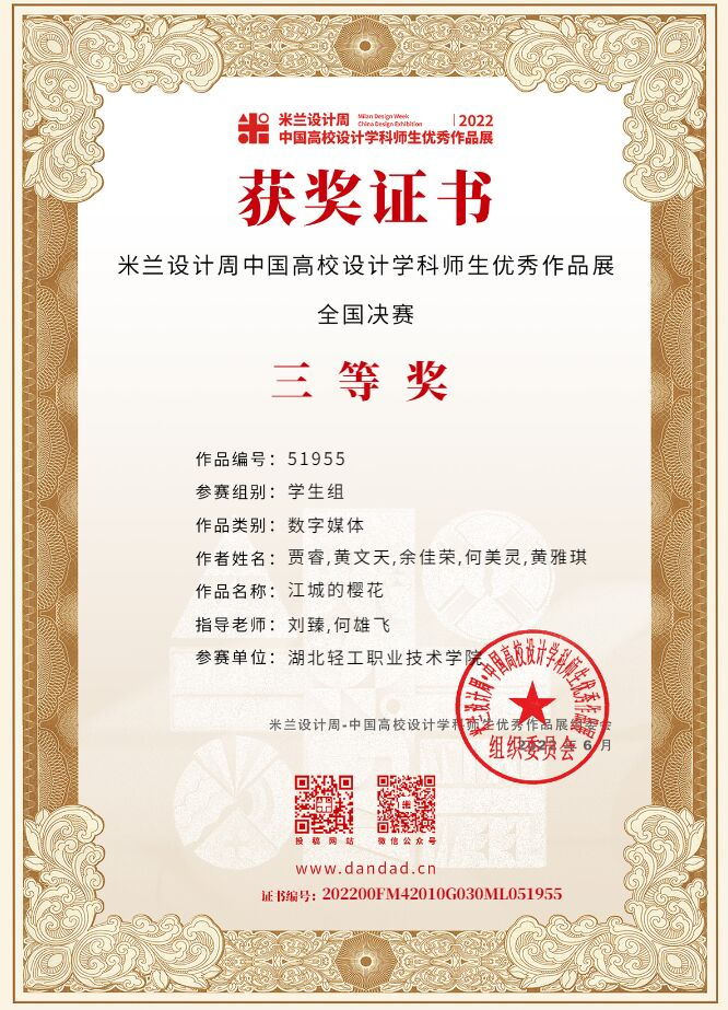 (建筑工程与设计学院 21级会展黄文天讯)在尹蕾老师和刘臻老师的指导下,我校学生作品《红色革命之旅》荣获米兰设计周中国高校设计学科师生优秀作品展省级二等奖;在刘臻老师和何雄飞老师的指导下,学生作品《江城的樱花》荣获米兰设计周中国高校设计学科师生优秀作品展省级三等奖和国家级三等奖。