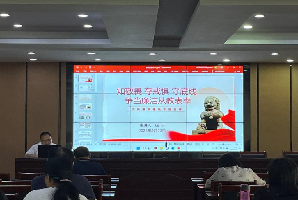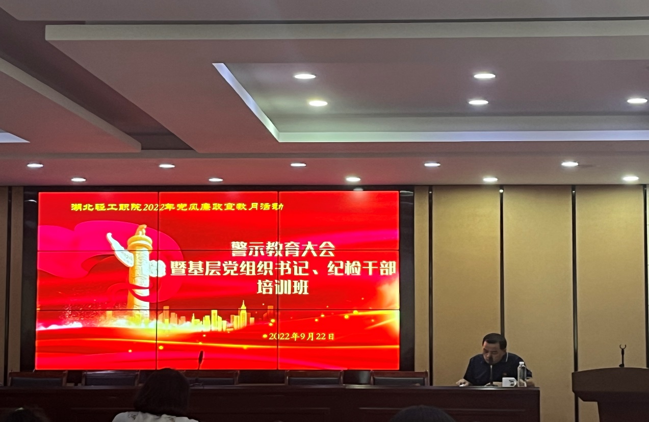 (党政办公室 刘臻讯)为扎实开展清廉学校建设,学校于2022年9月22日下午在六楼会议室召开党风廉政建设宣传教育月警示教育大会,基层党组织书记、纪检干部培训班,学院各基层党组织书记、纪检委员、党政办、纪委办人员参加大会并接受党风廉政培训,纪委书记罗代吕同志主持会议。