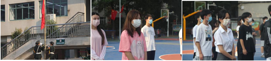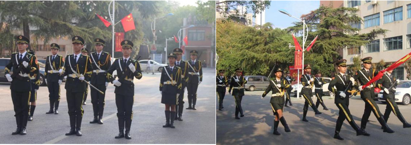 上午八点整,升旗仪式正式开始。同学们面向升旗台列队整齐。国旗护卫队的同学们昂首挺胸、精神抖擞,迈着整齐的步伐,护卫国旗入场。