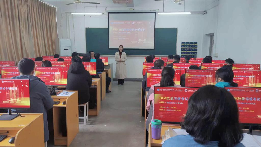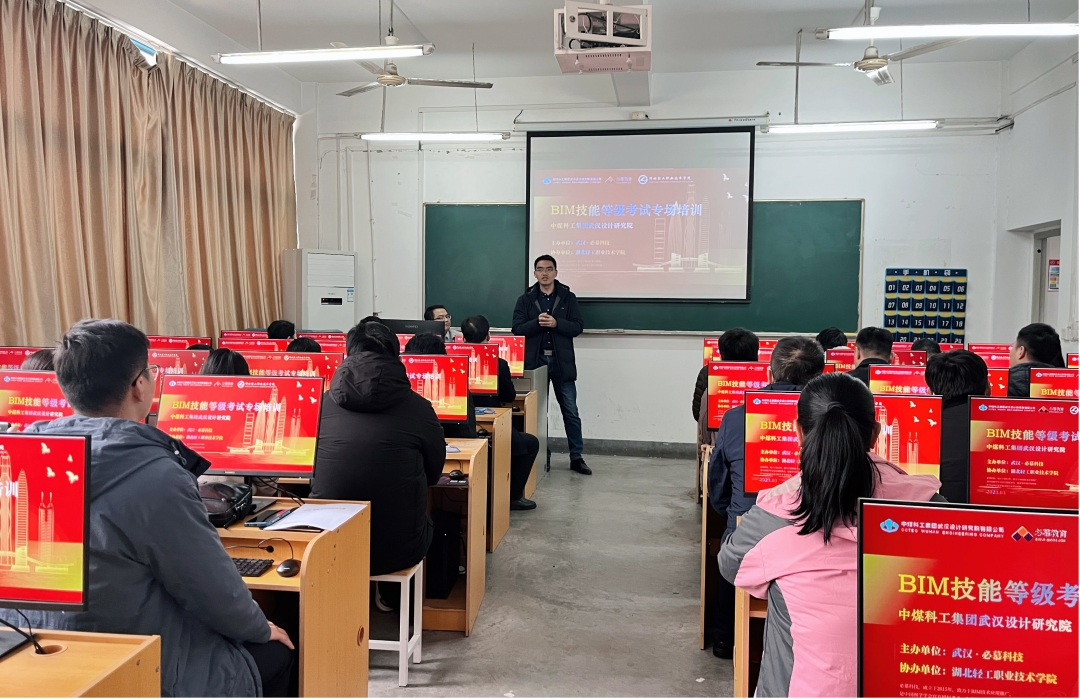 (建筑工程与设计学院 周茂胜讯)3月18日上午9:00,由我校建筑工程与设计学院和武汉必幕科技公司联合举办的为中煤科工集团武汉设计院开展的BIM等级技能考试培训在D306实训室举行。