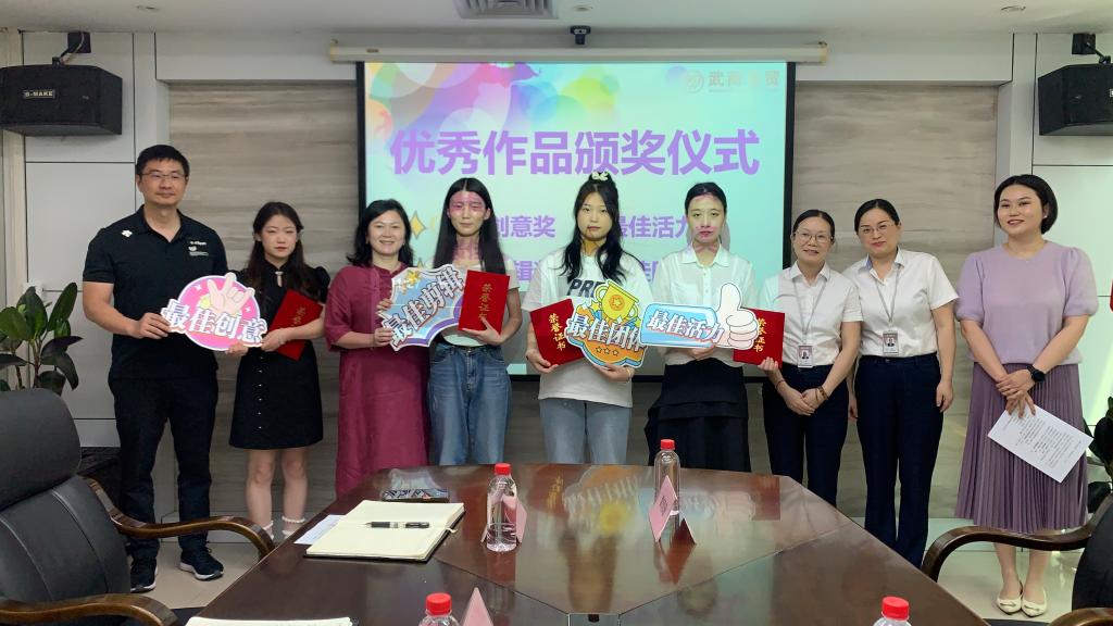 总结会上,四位名实习生代表展示了各小组的实习作品,汇报了自己的实习感想。双方领导肯定了同学们在实习期间的表现,为同学们发送了荣誉证书并合影留念。本次为湖北轻工职院工商管理学院电商专业16名学生,在武商亚贸进行为期两周新媒体课程实践活动。