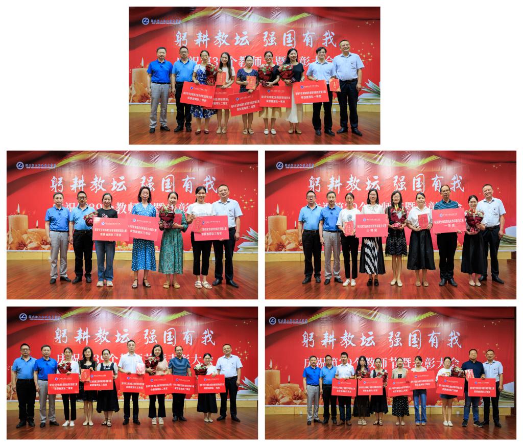 大会对学校从教30年教师、2023年度校优秀教师、2023年度校优秀辅导员、荣获第九届湖北省高等学校教学成果奖的教师团队、指导学生荣获湖北省职业院校技能大赛(高职组)大数据技术与应用等赛项的教师团队及荣获“中银杯”湖北省高职院校教学能力大赛奖项的教师团队进行了隆重表彰。