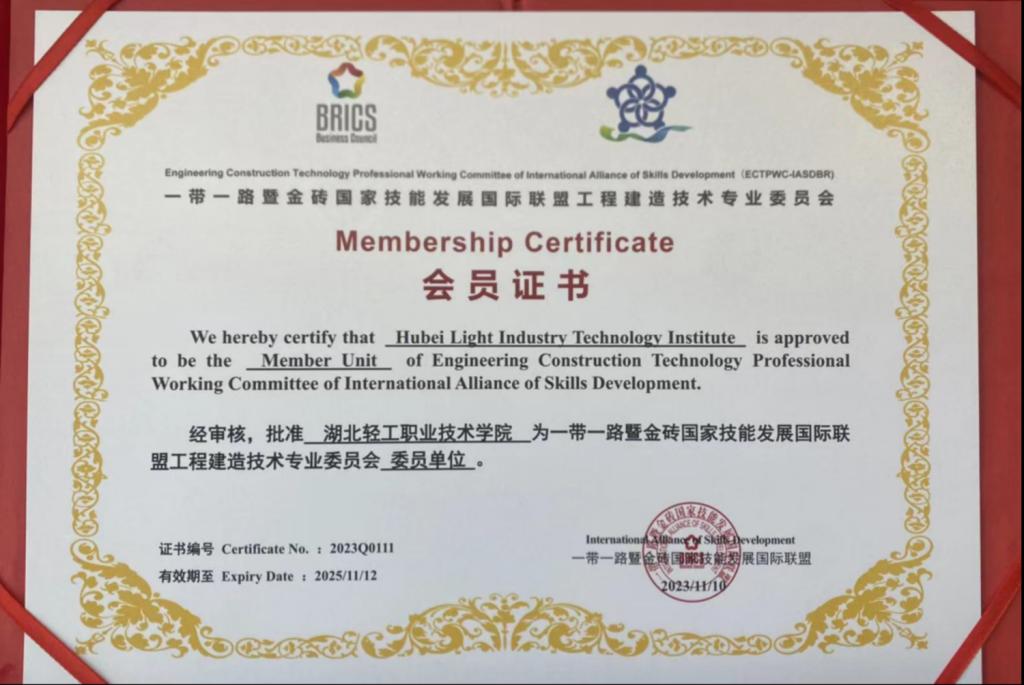 一带一路暨金砖国家技能发展国际联盟工程建造技术专业委员会于2023年6月在北京启动筹建。11月中旬,工程建造技术专业委员会成立大会、金砖国家国际团体标准之“建筑信息建模”职业技能标准启动会以及技能发展与技术创新大讲堂在厦门顺利召开。会上湖北轻工职业技术学院校成功当选“一带一路”暨金砖国家技能发展国际联盟工程建造技术专业委员会委员单位。