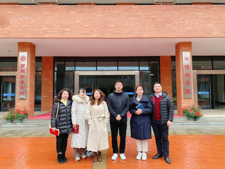 12月15日上午,湖北轻工职业技术学院工商管理学院院长邱文军带队、副院长沈静、学工书记欧阳竹君、市场营销教研室主任胡珊珊、专业负责人梁蓓一行5人,赶赴坐落在武汉职业技术学院葛店新校区的智能商务学院考察学习。智能商务学院周蓉院长、电子商务专业带头人张明勇、商务数据分析与应用专业带头人吕忠民、校企合作与社会服务办公室主任杨宁、学生工作办公室主任关勇等领导出席座谈交流活动。