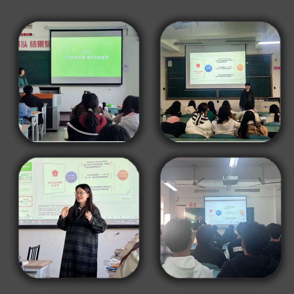 各院系组织在校学生开展了一次以法律为主题的班会,结合学生生活实际普及和宣传相应的法律知识。