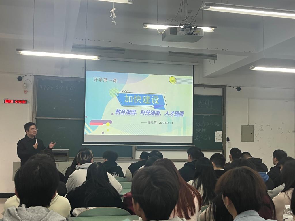 (党委宣传部讯)瑞雪岁冬止,暖风伴春来。为贯彻落实2024年全国和全省教育工作会议精神,扎实推进立德树人质量提升行动,引导广大教师有针对性地做好学生教育引导工作,引领广大师生以积极向上的精神面貌投入到新学期的学习生活,近日,我校2024年春季学期“开学第一课”正式开讲。学校党委书记徐兵和党委副书记、院长夏光蔚带领校领导班子成员深入各二级学院党支部和学生课堂上好“开学第一课”。