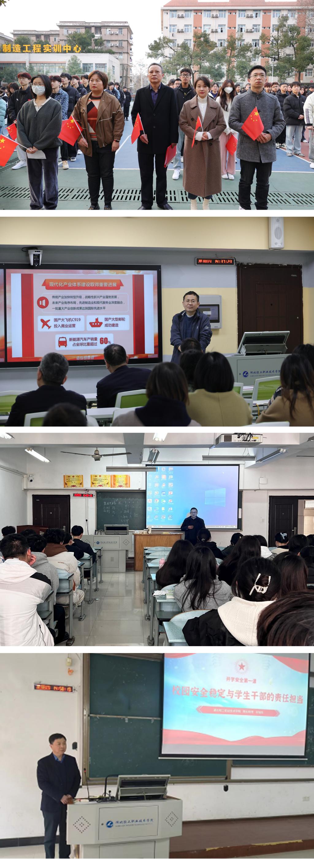 党委副书记王圣同志为轻化工程学院的全体师生上了题为《奋进新时代,做好接班人》的思政课;副院长付三乔同志为机关第一党支部全体党员就2024年政府工作报告精神结合职业教育高质量发展进行了解读;校领导黄宪富同志以《中国式现代化与青年担当》为题,给建筑工程与设计学院学生代表讲了主题党课;校领导祁旭东同志以《校园安全稳定与学生干部的责任担当》为题,给机电工程学院全体辅导员和学生干部代表上了一堂思政课。