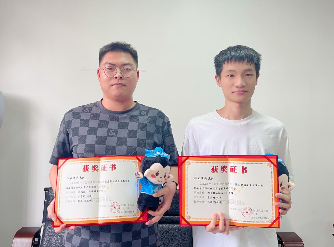 (建筑工程与设计学院 李晓东讯)湖北轻工职业技术学院建筑工程与设计学院21级建筑智能化工程技术专业秦家珩、姚尚两位同学通过不懈的努力和扎实的专业技能,在“2023年全国职业院校技能大赛高职组建筑智能化系统安装与调试”赛项中荣获团体三等奖的好成绩,为学校赢得了荣誉,也为自己的未来铺设了更宽广的道路——获得免试专升本的资格。