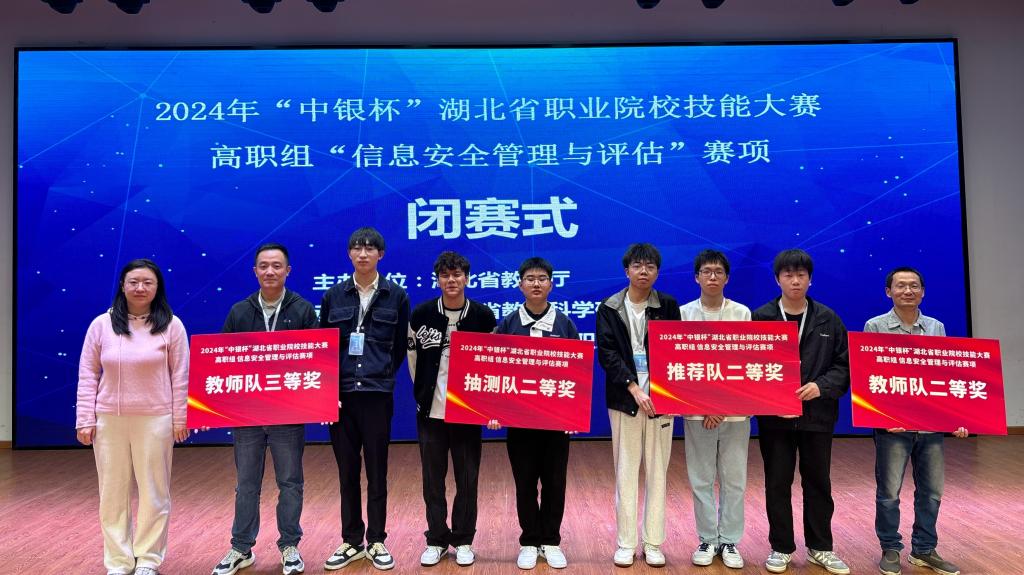 3月23日在信息安全管理与评估赛项中,22级计算机网络技术和云计算技术应用专业的陈速延、奚家文、石涛同学获得推荐队二等奖,周运威、吴章景、蔡恒同学获得抽测队二等奖。教师组中,杨健老师获得二等奖,刘震老师获得三等奖。