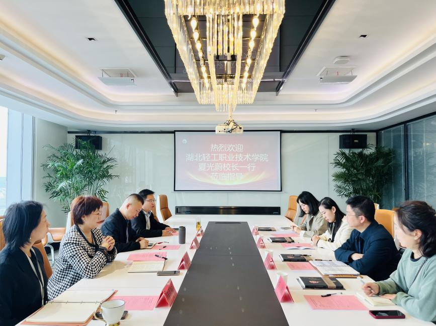 在2024年4月8日,受湖北海天恒基装饰集团邀请,湖北轻工职业技术学院校长夏光蔚带队,学校建筑工程与设计学院院长杨洁、建筑装饰教研室主任李娟、环境艺术专业负责人万蔚一行四人前往该公司进行访企拓岗深入交流。湖北海天时代科技股份有限公司总经理余琴、副总经理徐俊杰,商务负责人刘照明、教学负责人桂思敏,参加了此次交流。夏校长对企业进行走访,就人才供需对接、校企合作协同育人等领域进行深入交流,对现阶段建筑工程与设计学院与海天恒基装饰集团的合作形式给予了建议、提出了方向。