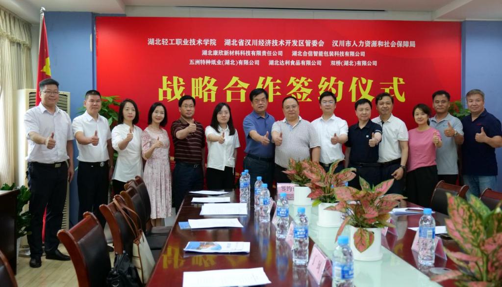 洽谈会上,机电工程学院院长洪凯与康欣新材料股份有限公司、湖北合信智能包装科技有限公司负责人签订了人才战略校企合作协议;轻化工程学院院长赵锦与五洲特种纸业(湖北)有限公司、达利食品有限公司、双桥(湖北)有限公司负责人签订了人才战略校企合作协议。