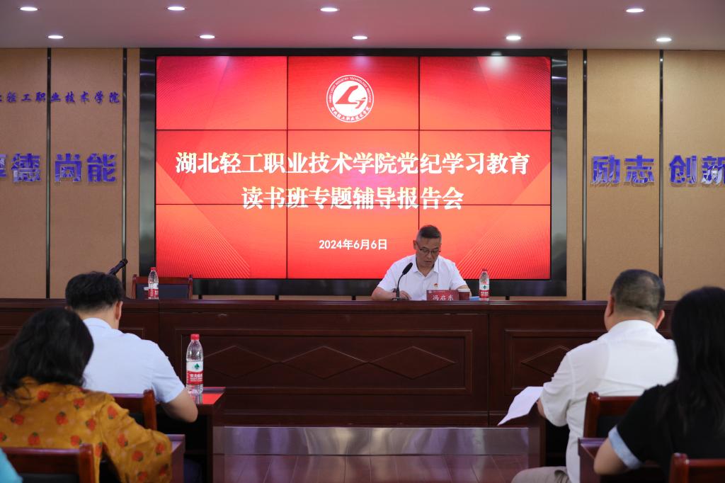 (党委宣传部 田梦讯)6月6日下午,学校举办党纪学习教育读书班专题辅导报告会,省纪委监委驻省教育厅纪检监察组组长冯启东同志做专题辅导报告。学校党委理论学习中心组成员、全体中层干部、后备干部、教研室主任、教师代表和学生党员代表100余人参加了报告会。报告会由党委书记徐兵同志主持。
