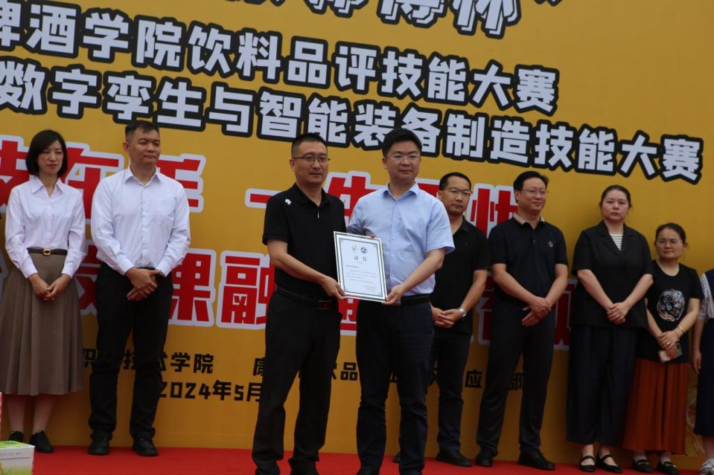 开幕式结束后,参赛选手们就来到啤酒实训中心酒吧进一步了解比赛流程及操作规程。上午9时15分各参赛选手在我院感官品评室进行技能比拼。此次大赛主要包括基本味觉挑战、盲品品评和风味梯度测评等赛项。经过初赛和决赛两轮激烈的比拼,最终从36名来自22级和23级两个饮料班的同学中评选出1个一等奖、2个二等奖、3个三等奖和12个优胜奖的获得者。其中,来自22级饮料班的蔡晨阳同学成功获得本次大赛的一等奖,校企双方领导依次为获奖的学生颁奖,愿所有的获奖选手们继续保持谦虚好学的品质,不断追求卓越,实现更高的目标。