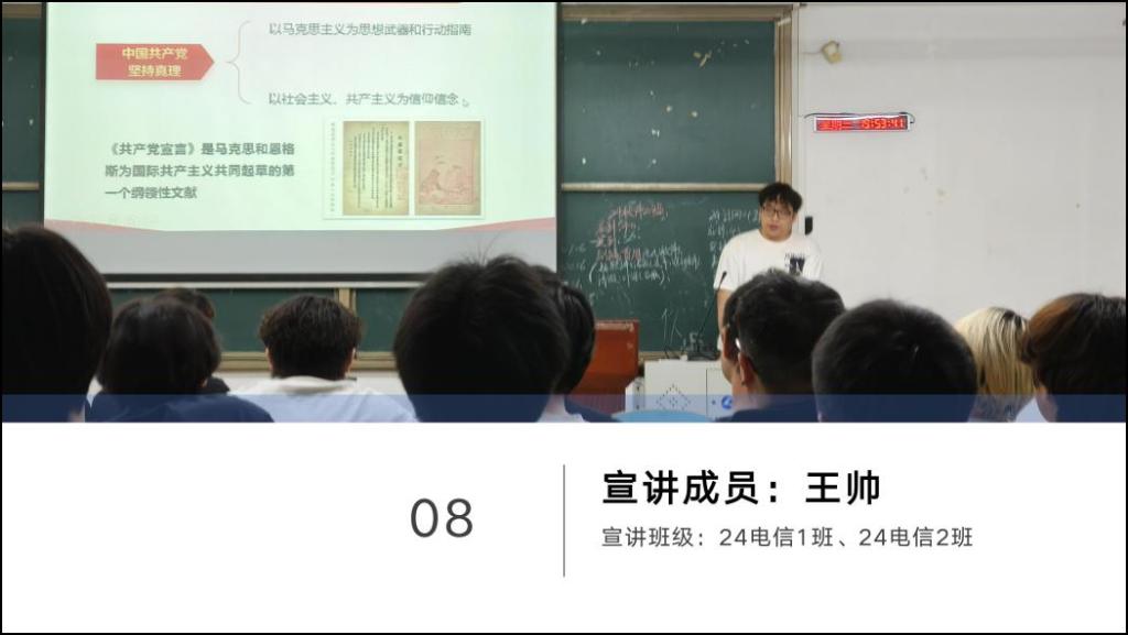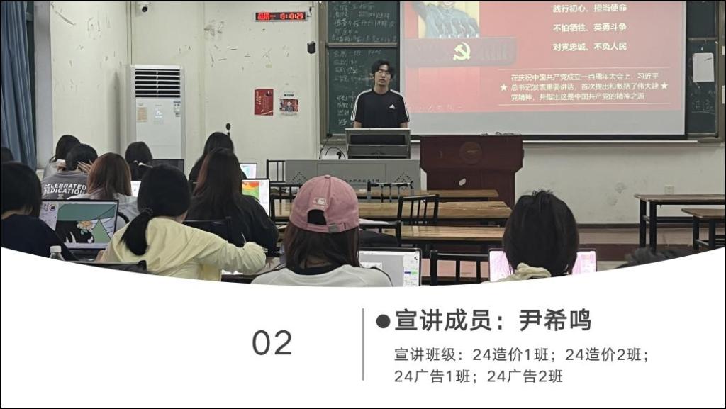 5月19日至6月5日,“青年说”宣讲团历时三周,深入全校六个学院班级课堂,开展“伟大建党精神”主题巡讲,共计完成28场宣讲,累计覆盖 2000余人次。成员聚焦“坚持真理、坚守理想,践行初心、担当使命,不怕牺牲、英勇斗争,对党忠诚、不负人民”的核心内涵,巧妙运用青年视角与鲜活语言,将党的奋斗历程与精神谱系转化为青年学子易于理解、引发共鸣的生动讲述,使理论宣讲转化为朋辈间真诚的思想对话,引发广泛共鸣。此次宣讲活动搭建了青年自我教育、朋辈互学的新平台,让伟大建党精神在青年群体中焕发时代活力。