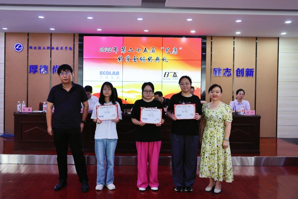 接着,艺康中国(投资)有限公司食品饮料事业部市场总监蔡锦女士宣读获奖学生名单。在催人奋进的颁奖进行曲中,艺康公司的各位嘉宾和学院的各位领导为获奖的15名优秀毕业生颁发了荣誉证书,并合影留念。