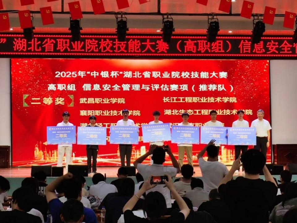 (信息工程学院 杨健讯)近日,2025年“中银杯”湖北省职业院校技能大赛高职组信息安全管理与评估赛项在武汉圆满落幕。本次赛项吸引了44支推荐队与43支抽测队同场竞技。经过激烈角逐,信息工程学院杨健、刘震老师指导的23云计算1班杨鑫龙、22云计算1班奚家文、22计网1班陈速延三位同学表现出色,在推荐队中荣获团体二等奖的好成绩。
